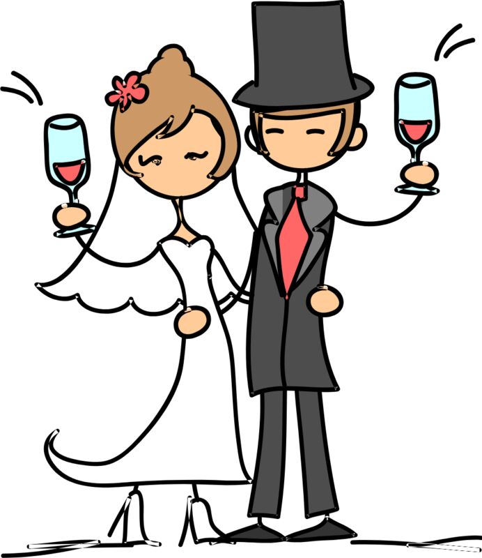 Cartoon Wedding Groom Bride Champagne Glasses 3