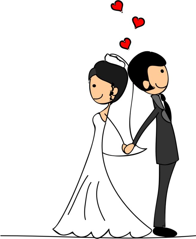 Cartoon Wedding Groom Bride Holding Hands 7