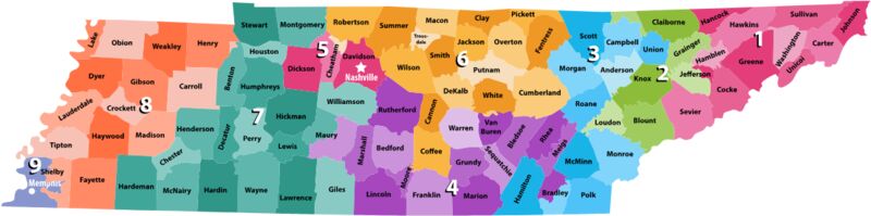 Tennessee Counties Districts Map 1