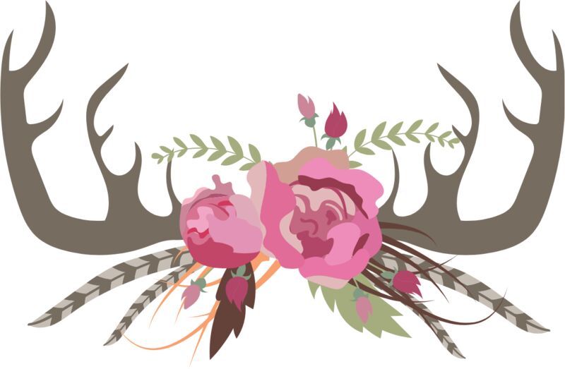 Watercolor Tribal Antlers Flowers 1